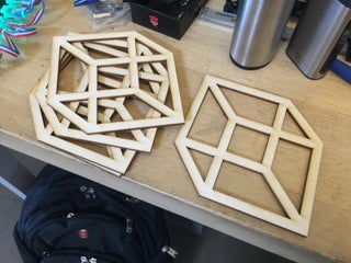 Very little to do here other than replicate LeWitt's design for the purposes of laser cutting. Attached is the .DXF file, which I designed in Fusion360. I resized it so I could fit it into a single sheet of 2' × 3' plywood (each cube ended up 4.66", 118.5 mm).