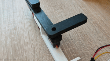 I aligned the crossbar in the same way at 0 degrees and fixed the bar to the servomotor shaft with a screw. You can see the result in the animated gif below.