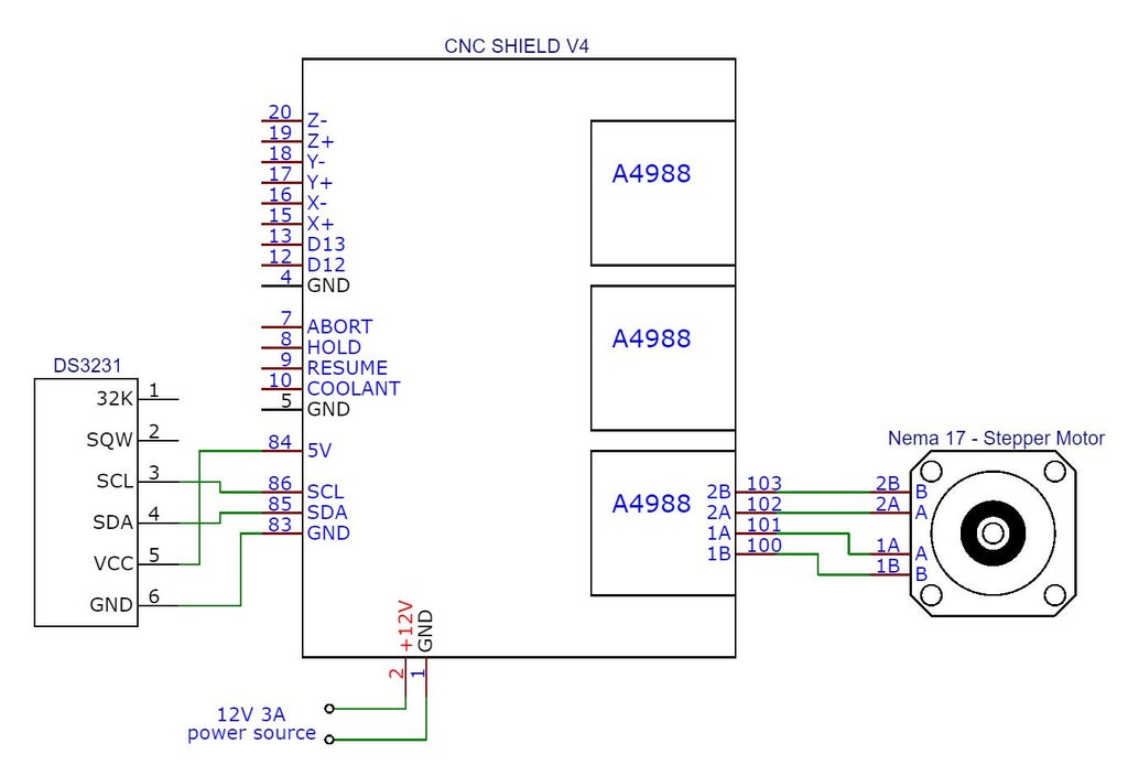 As you can see, I just made some quick connections: with Dupont wires between the RTC module and the CNC shield and with cables between the motors and the CNC shield, you can see in the photos above how it looks.