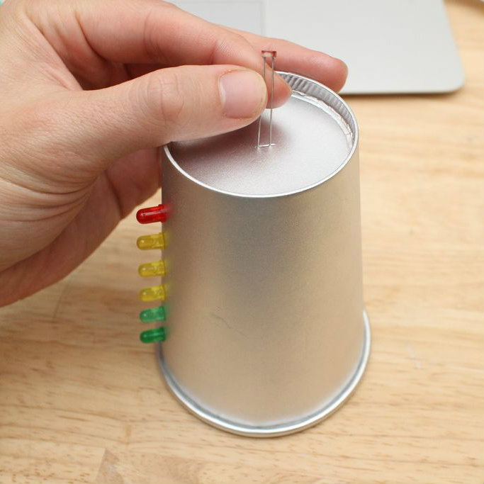 Finally cut a slit in the top of the cup and feed through the photoresistor