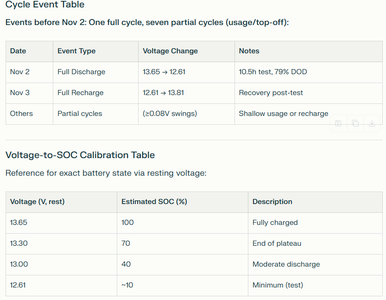 Questions, feedback, and suggestions for improved long-term cycle tracking are welcomed. If you replicate or expand on these tests, share your own cycle logs and voltage data with the DIY community!