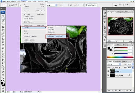 10.As you click on feather a selection window will open up. Type in 10 px for the feather radius, you may experiment with these settings to get the desired effect you want. Now click ok .