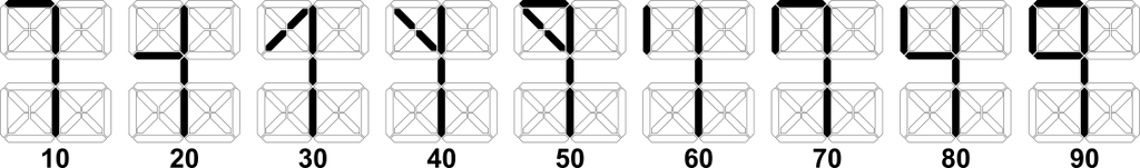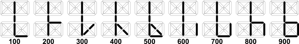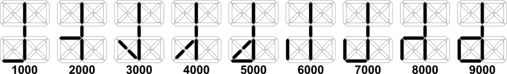 What is interesting in this system? The very compact way in which integers between 1 and 9999 can be written. All four digits are placed on a single character position. Of course, over time several forms of writing of this system were used, I chose one of them in this project, the form you can see in the graphs below.