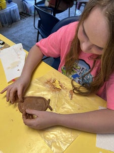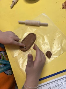The students each got a piece of air dry clay about the size of ping pong ball. They rolled out the clay and shaped it into an oval about the size of a 3x5 index card.