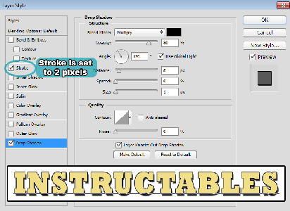 A stroke will add a border to your text. By default it’s set to 3 pixels, which is fine. I made mine a little smaller and set it to 2 pixels. The second effect adds a shadow on your text. You can use the angle option to change the direction the shadow is going.