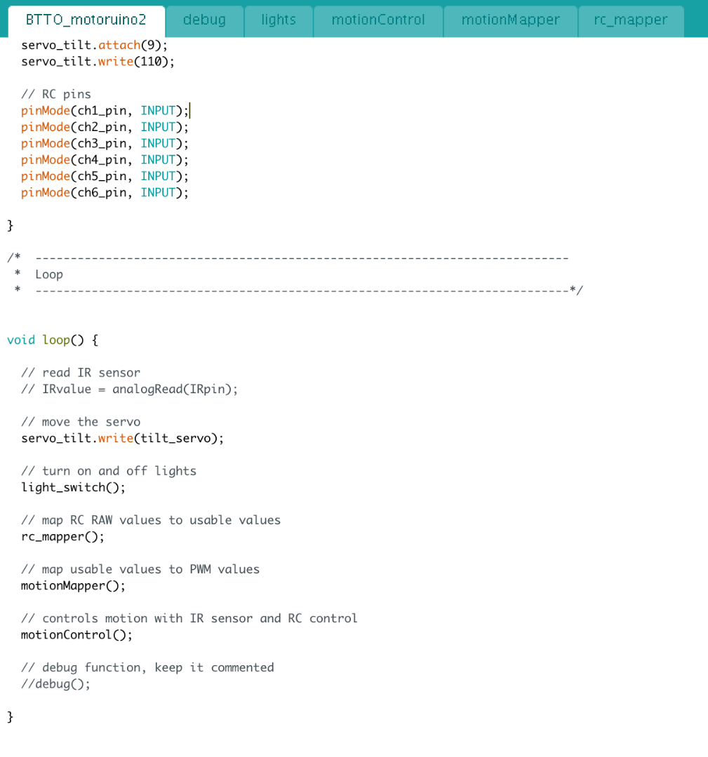 motionControl() - just uses the values that comes from the motionMapper() and sends them through the function setPWM(leftMotor, rightMotor).