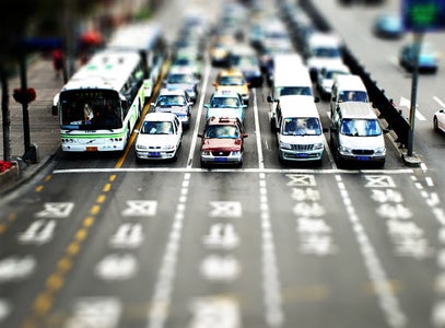Once the photo is open in Photoshop, switch over to Quick Mask Mode (Q) and use a large soft black brush to draw a line across the first row of cars.