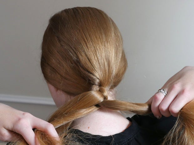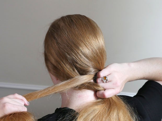 Divide your ponytail into three sections. Smooth your fingers through each one then cross the rightmost section over the center one, then cross the left section over the center one, and so on as you have already learned.