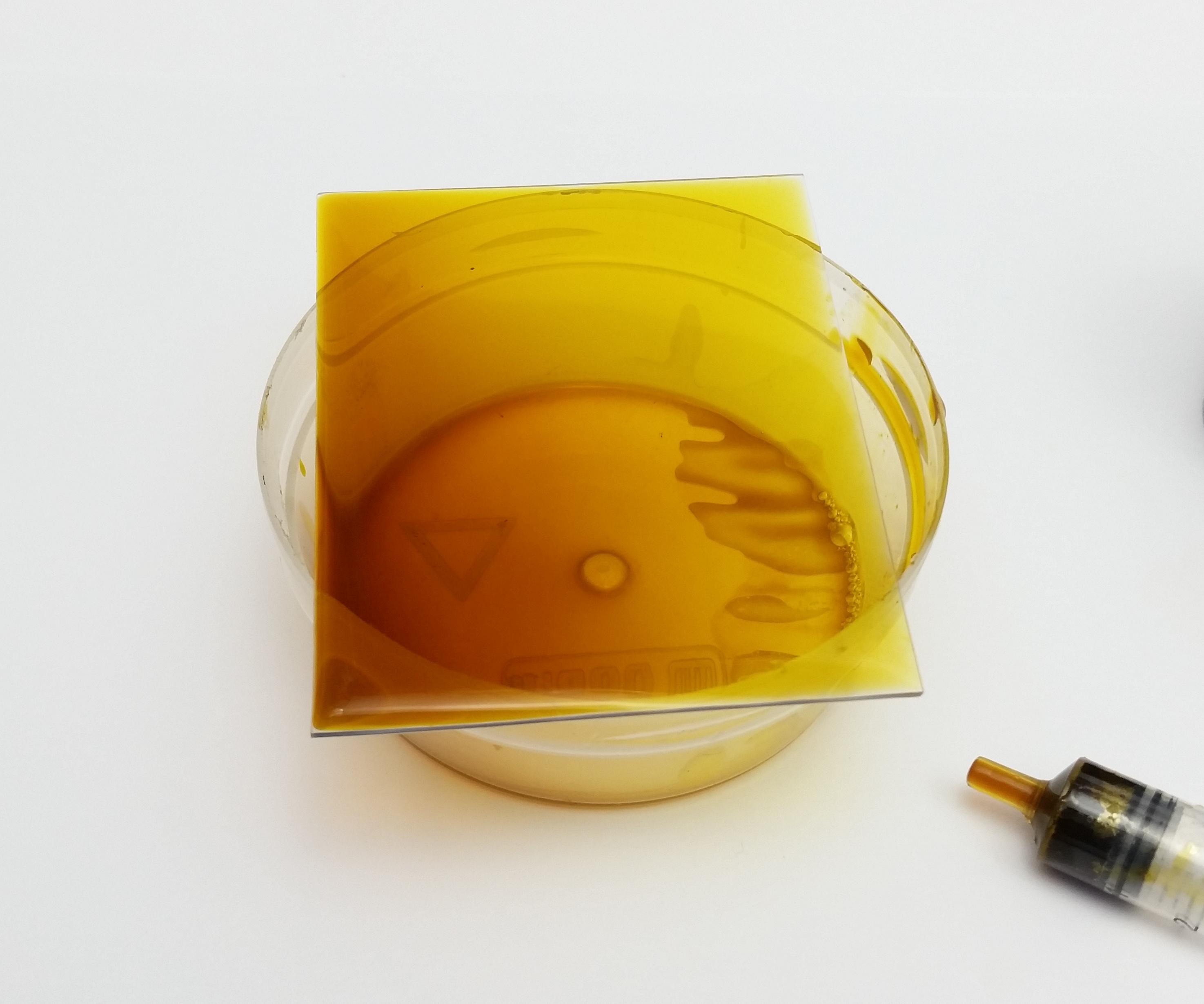 You will need to keep this solution warm or it will set up, you can either keep the container in a bowl of hot water or like me keep everything on the heated bed of A 3D printer 🤣.