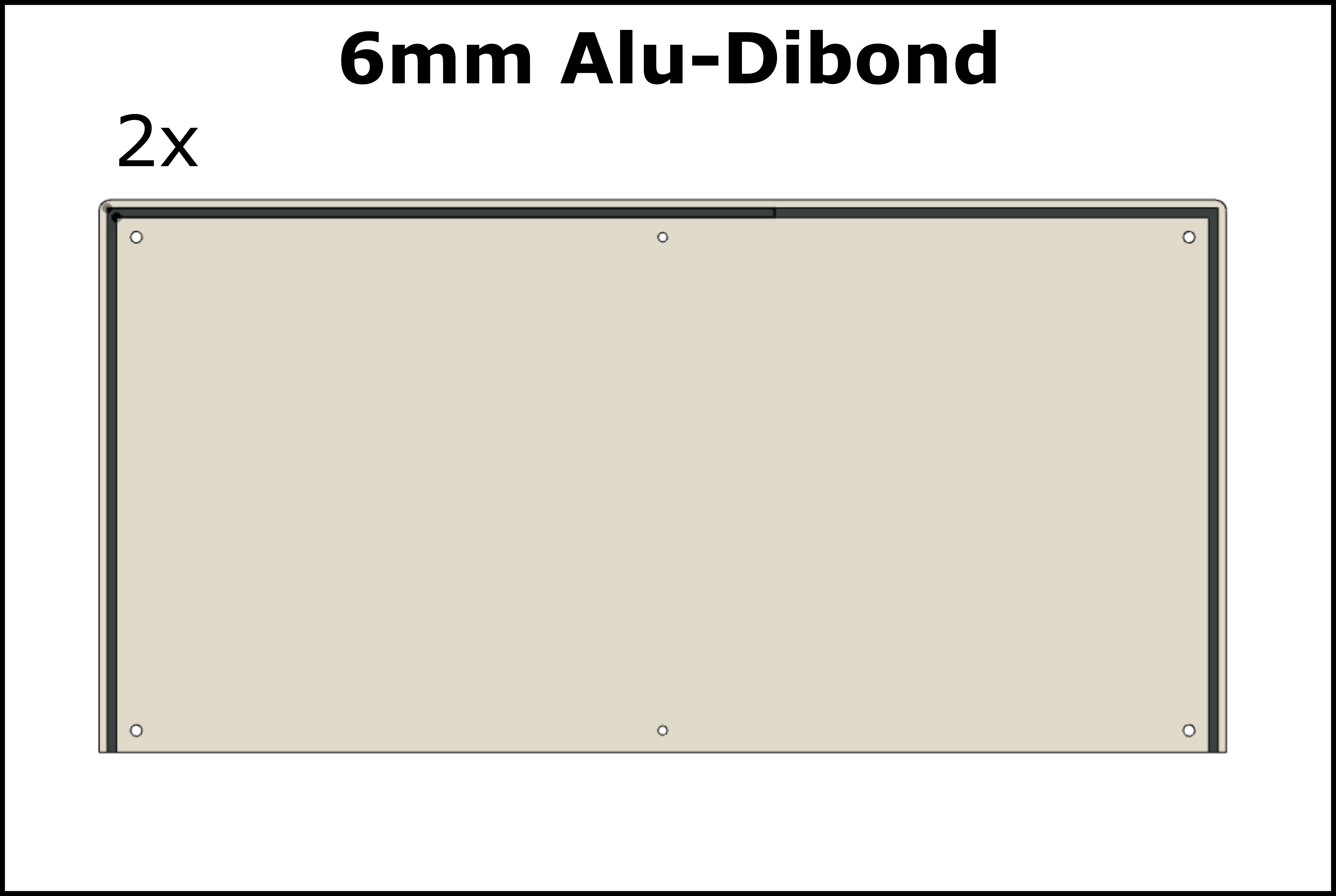 For the enclosure I desided to use Aluminium-Dibond, because it will totaly block the CO2 Laser. Even a focused beam can not cut trough this material. Also it is prepainted in white, which is ideal for my application.