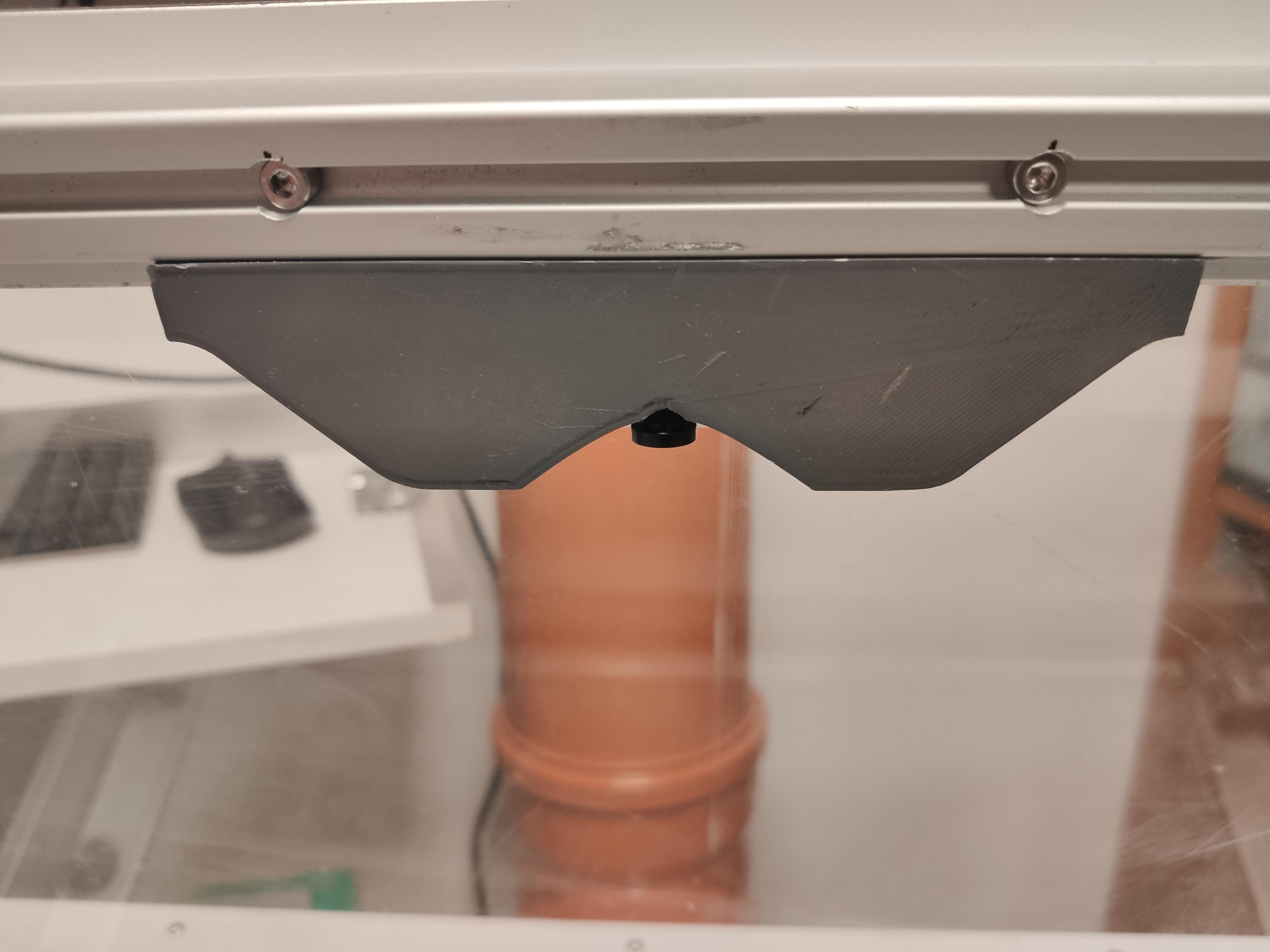 To guide the fumes, which where created while cutting/engraving I have installed a funnel. The Funnel is build out of Dibond-Plates.