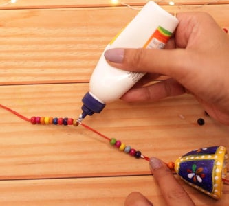 Now I am taking embroidery thread to hang the bells. You can use any color of thread you like. I am also using some colorful beads, which are easy to arrange.