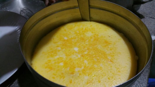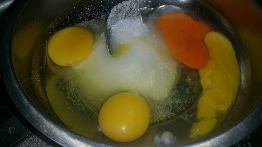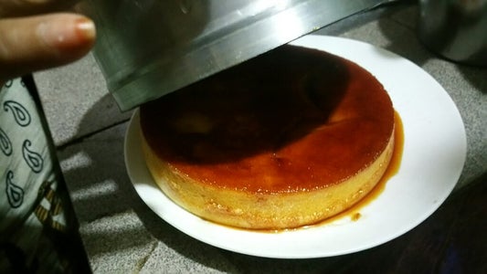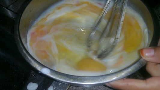 Then take another bowl and put some suger , eggs, and milk and beat it.Then put the mixture into the brown sugar pan
