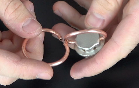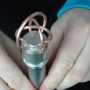 We make three rings from copper tubing. Each ring should have a slightly larger diameter than the previous one. Then, we fix them in place as shown in the video. Please watch the video for more detailed instructions so you can understand how to properly press the tubes into place.