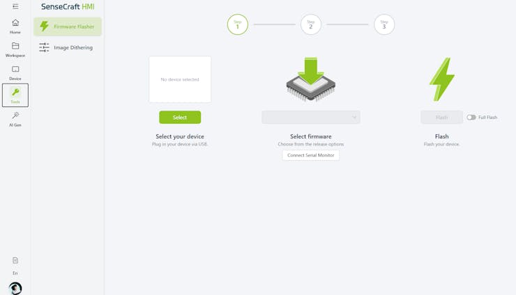 Let's give sole to this project, follow these steps to flash the Sensecraft HMI Fw onto our device