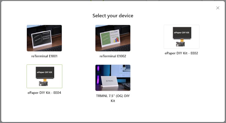 3.Select your device as the epaper DIY kit EE04