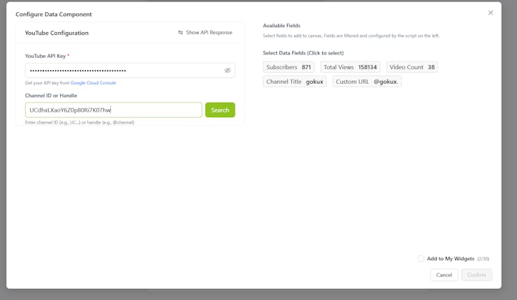After entering the API key, you can enter the Channel ID or Handle. It is not limited to your channel; you can enter the Channel ID from other creators and receive data regarding that.
