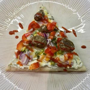 I enjoyed my slice with a drizzle of hot Sriracha sauce!