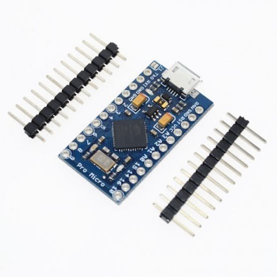 The Pro Micro is similar to the Arduino Mini Pro except with an ATMEGA32U4 on board. This chip makes a big difference as it can also be used as a Human Interface Device. The USB transceiver inside the 32U4 allows us to add USB connectivity on board and do away with bulky external USB interfaces. This little board does all the Arduino functions you are familiar with: 4 channels of 10-bit ADC, 5 PWM pins, 12 DIO, as well as hardware serial Rx and Tx connections. Running at 16MHz and 5V, this little microcontroller can go anywhere. There is a voltage regulator on board so it can accept voltage up to 12V.