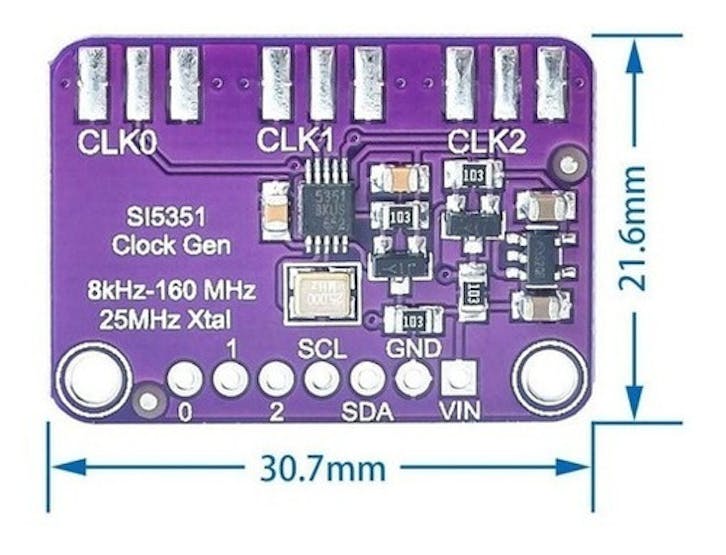 The Si5351 has the ability to generate three independent clock signals with frequencies ranging from a few kilohertz to a few hundred megahertz, making it suitable for a wide range of applications. In addition, it is programmable via an I2C communication interface, allowing designers to easily adjust the frequency and phase of the output signal accurately and quickly.