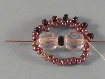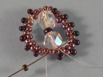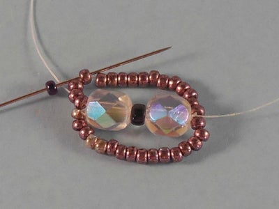 String 16C and go back through the beads strung in Step 1 from the tail end. The seed beads will form a loop around the fire-polished beads.