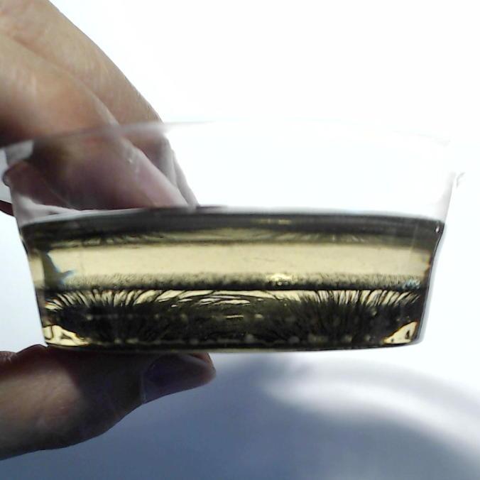 - Fill a small portion of the mold with clear resin, and wait for it to mostly cure. This makes a clear layer beneath the magnet, and will ensure there's not a level of unpatterned iron filings on the bottom. This level must cure more completely than for most inclusions: magnets are much more dense than resin, so they will sink much more than paper, flowers, or other common types of inclusions, so expect a long wait.