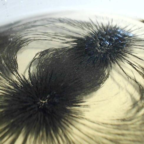 For centuries, people have used iron filings to observe magnetic field lines. But there's a certain magic in seeing finer details, especially in three dimensions - which I saw when using a block filled with clear oil and iron filings. These same patterns can be frozen forever by using casting resin instead of oil.