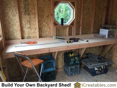 Workbench built in 10x12 Gambrel Small Barn Storage Shed view pictures of this shed being built at on our Gambrel Shed Photo Gallery