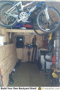 Gambrel Shed with loft storage and overhead bike storage racks.Check out more photos of this shed build here: Gambrel Shed Photo Gallery