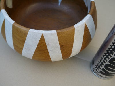 You'll need a wooden bowl, masking tape and copper spray paint