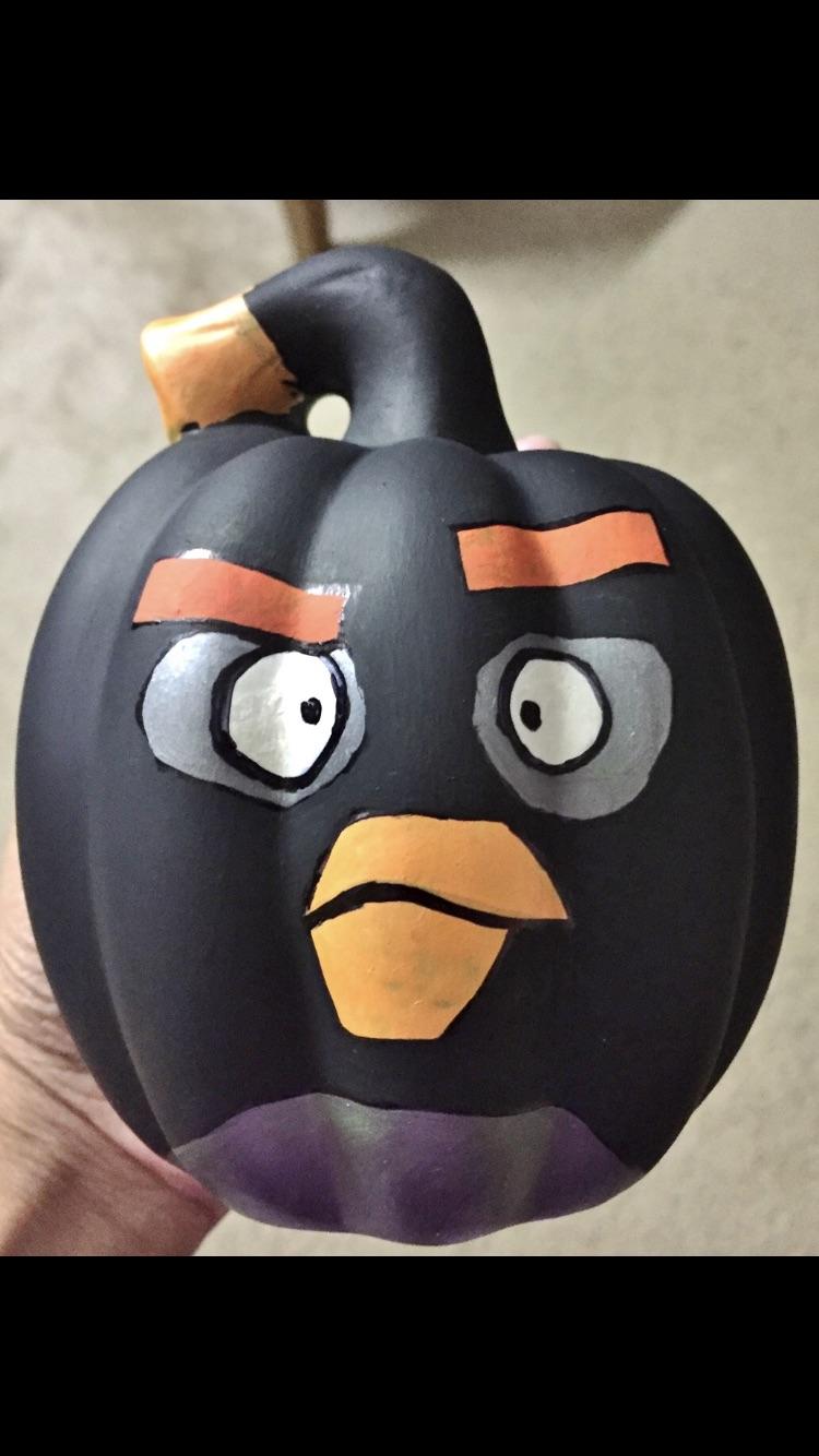 - Paint your pumpkin a light base color (I accidentally used the lime green but since the bird I chose is black, I just painted over the green… Phew).
