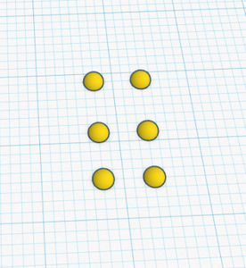 Place a semi-sphere with a diameter of .25 on another workplace, with the same "Properties" as the first one. Make 5 copies (6 total).