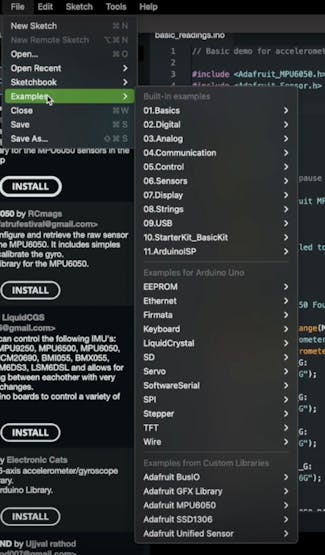 - The code is easy, thankfully the library itself comes with a full-fledged example. Go to the File tab and go to Examples, scroll to Adafruit MPU6050