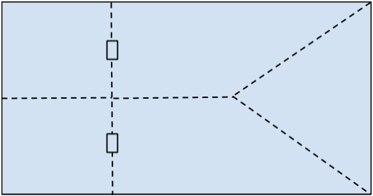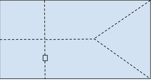 With the remaining area of the larger section, draw an imaginary line from the tip of the triangle leading into the section that was split into two.