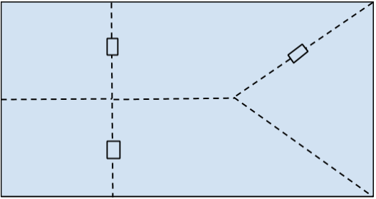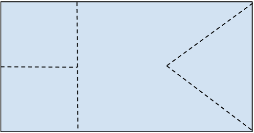 On the side of the table where the remaining 3 sections are, create a triangle with the corners of the table that meet in the middle of the larger section.