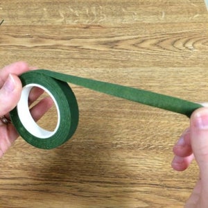 Unroll about 6-7” of tape. Stretch floral tape (C.) slightly to activate tacky quality.