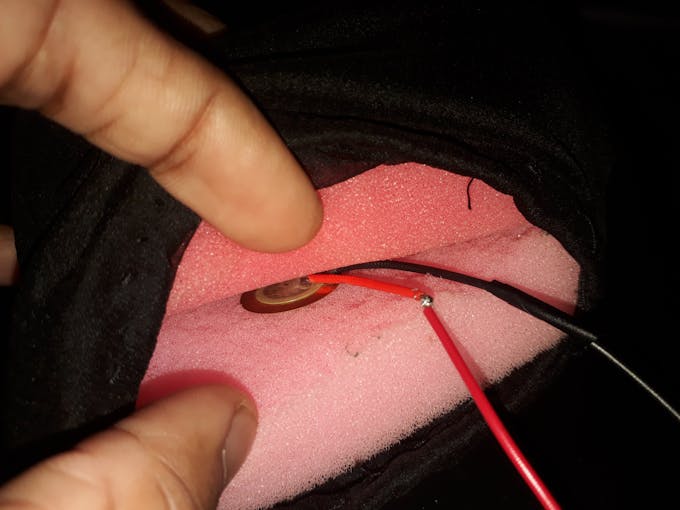 When force is applied on sponge it deforms and when force is released it gains it's original shape. The piezo element will be placing in between sponges and when ever some one hit on it, the generated voltage will be sending through analog pin of arduino micro.
