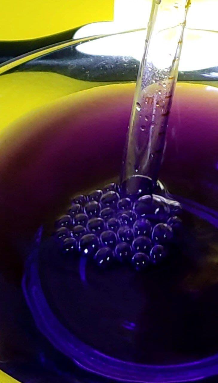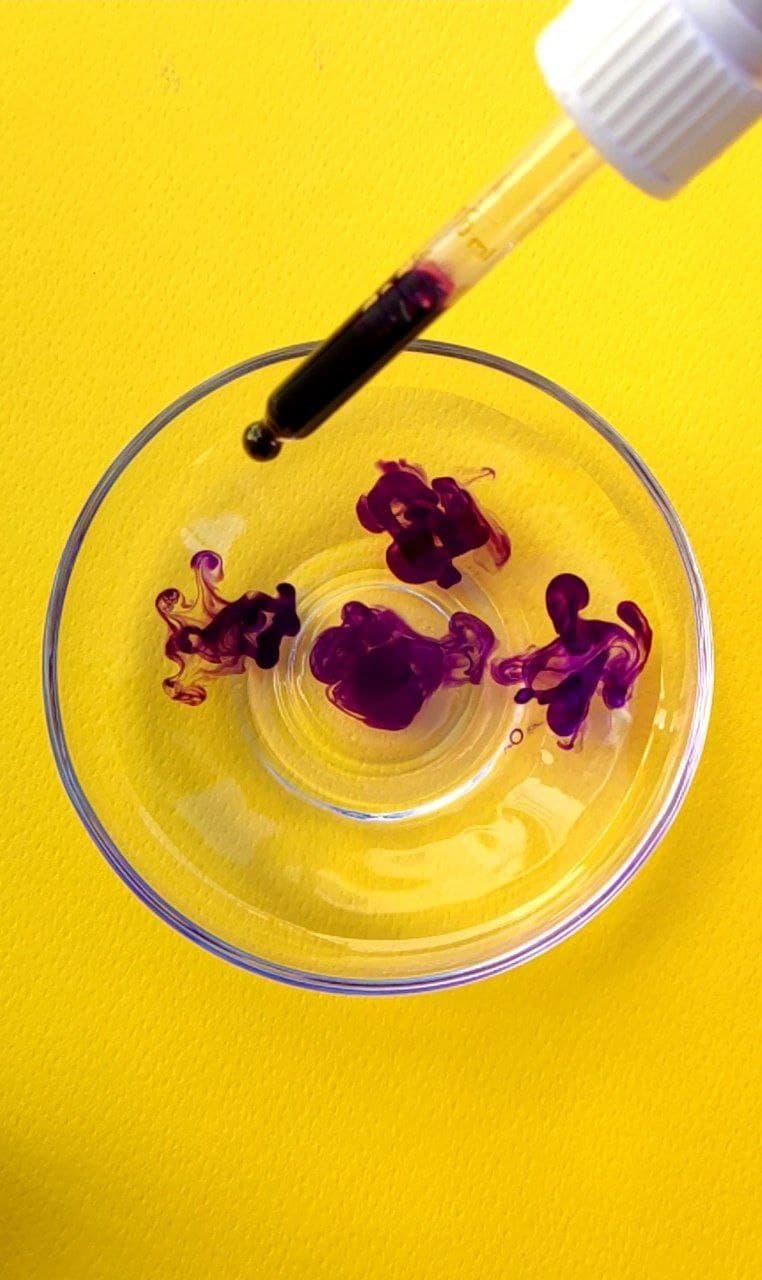 Finally, pour a few drops of the combination of vinegar and food coloring in the glass.