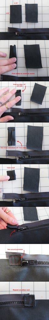 Making the lower strap attachment (small triangle of fabric that sticks out of the bottom of the back of a backpack)