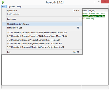 So, now you actually add games! Goto http://www.coolrom.com/roms/n64/all/ and choose any game you want! Download it and create a folder wherever you want. Then go onto Project64 and select "File". Then "Choose rom directory" and select your folder. Put your downloaded game into that folder, and it should appear in your games list!