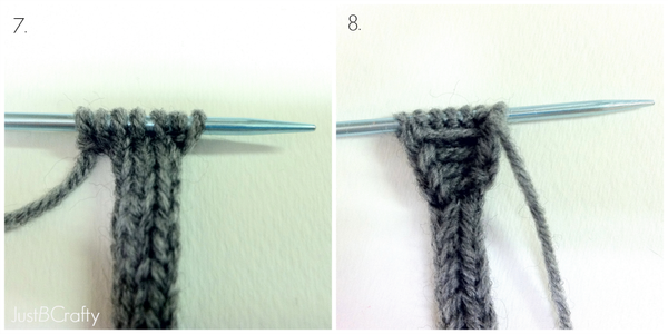 7. kfb, knit 3, kfb (7 stitches)