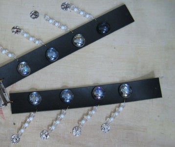 Now measuring and marking on the pieces of belt for making little holes with the help of drill machine. Put the wire rings in the holes.