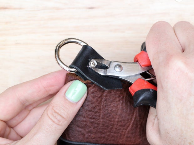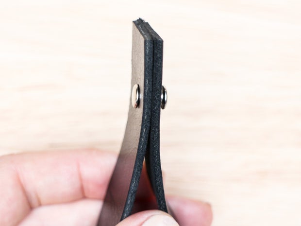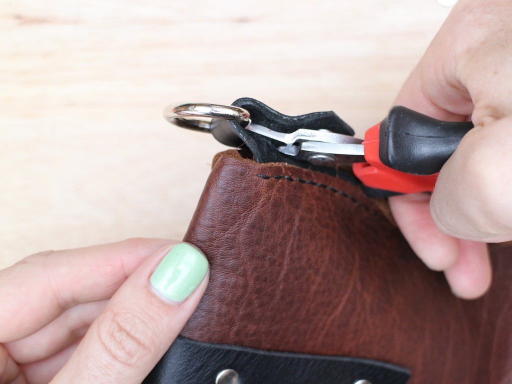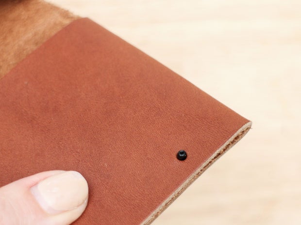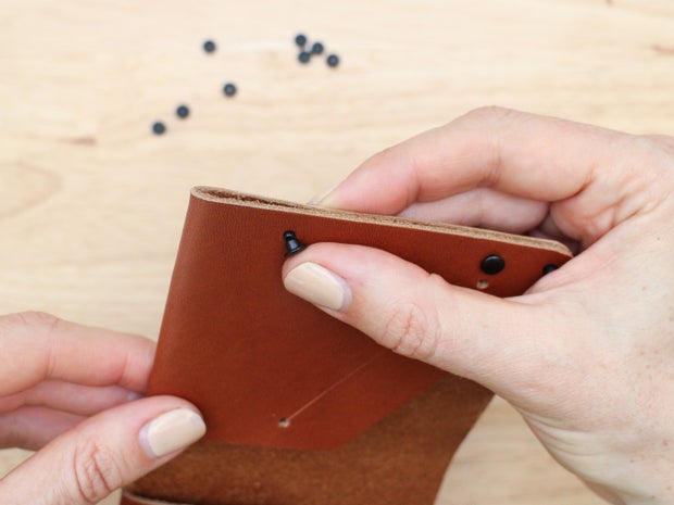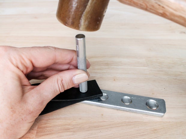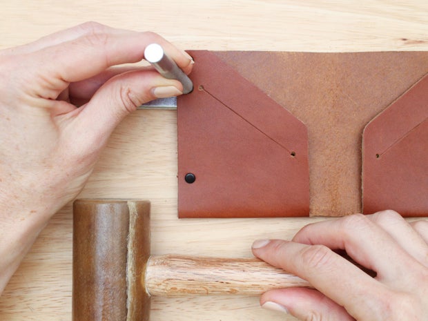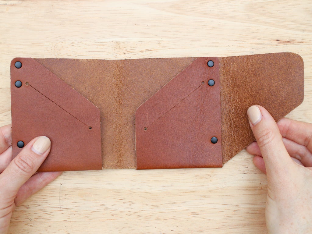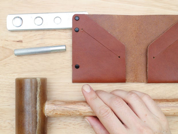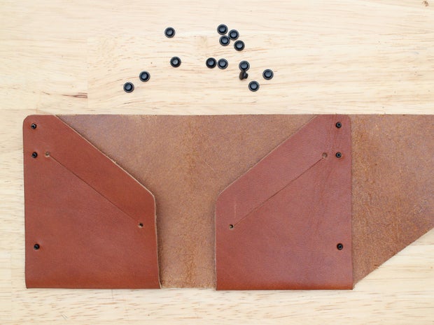 Now we are going to punch holes and rivet together the two folded flaps of the wallet.
