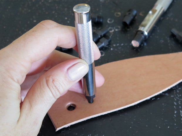 You can find punches in different shapes, like ovals for attaching buckles, or even decorative shapes like stars. Punches like this can be useful and fun for creating cut-out filigree patterns.