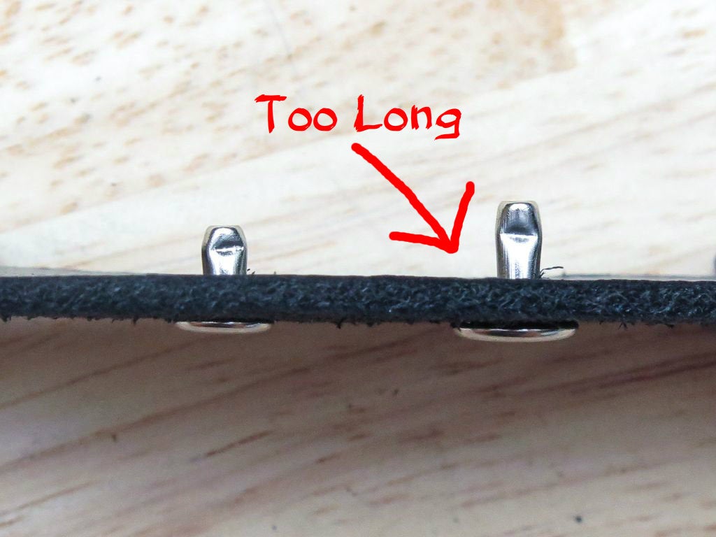 If the stem is too long, the rivet won't set right, and if the stem is too short, you won't be able set it at all. You don't want the stem to extend more than 1/8" beyond the leather. If it does stick out farther than this and you don't have another rivet option, you can use a pair of nippers to cut off the very end of the stem. The rivet should still set correctly, but you should test one on a scrap of leather first.