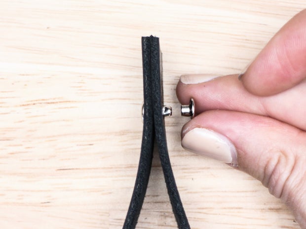 See how easy it is to assemble something with rivets?! Whether you have a rivet setter or just a hammer and a flat surface, rivets are a fast and secure way to make connections between pieces of leather. Rivets aren't always the right way to put something together, but when they are, they're amazingly convenient. Using rivets with different looks can also really add style to a design, and it's not unusual to use them purely for decoration.