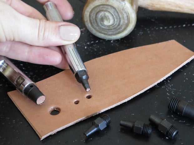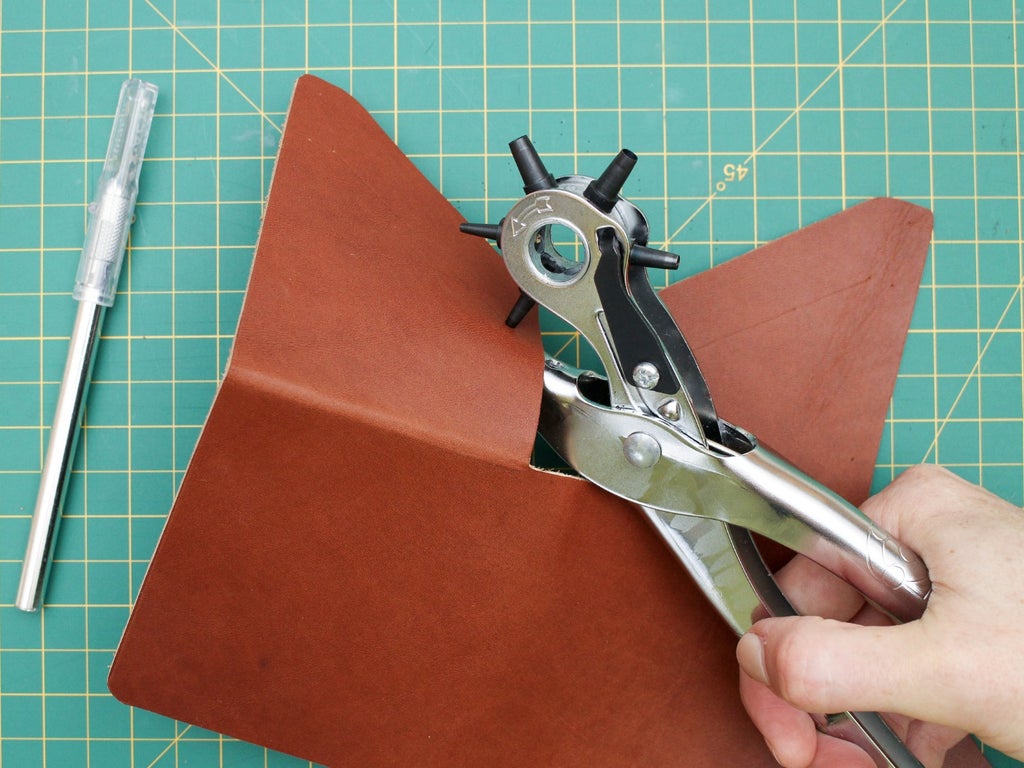 In order to attach rivets, snaps and other hardware to leather, first you need to punch holes. Punching holes in strategic places can also be helpful when you need to cut out slots or other complex internal shapes. There are a few different tools for hole punching that are better for different applications.
