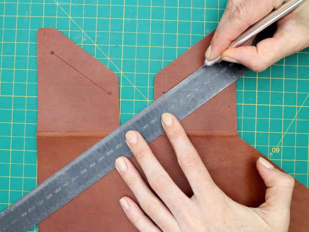 Use a punch to create a small hole at both ends of each slot you marked with the awl.