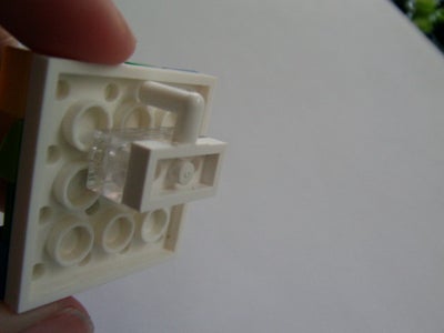 Stack the two 1x2 plates on top of the 1x2 plate piece with the handle. Attach that to the back of the 4x4 plate and it'll create a sort of loop so that it'll stay on the string.