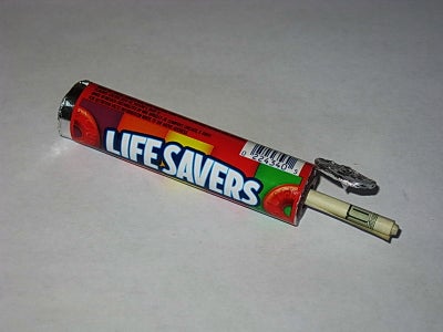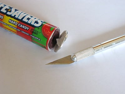 On one end of the roll of Lifesavers, your going to need to cut a flap.